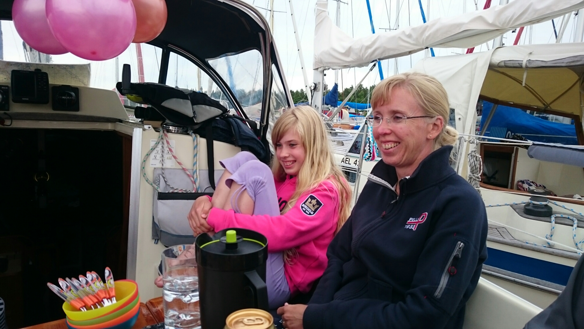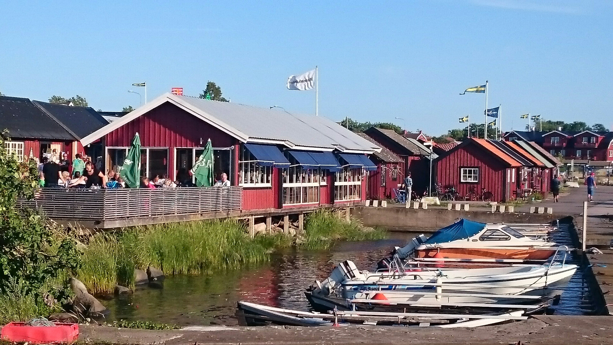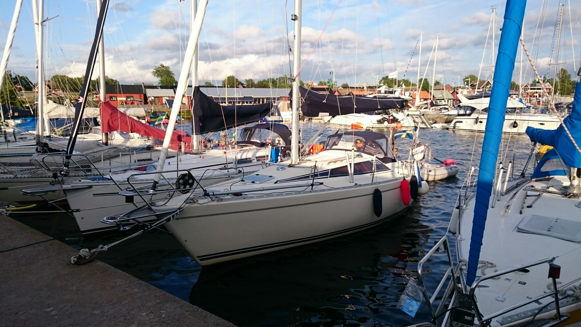 Dagen började med dusch utan varmvatten. Sen en heldag på stan i Västervik, middagen bestod av asiatisk buffé och sen blev det födelsedagsfika med kompisarna i båten. Äkta svensk sommar och 15 grader nu ikväll. Skönt att solen lyser på oss på dagarna.