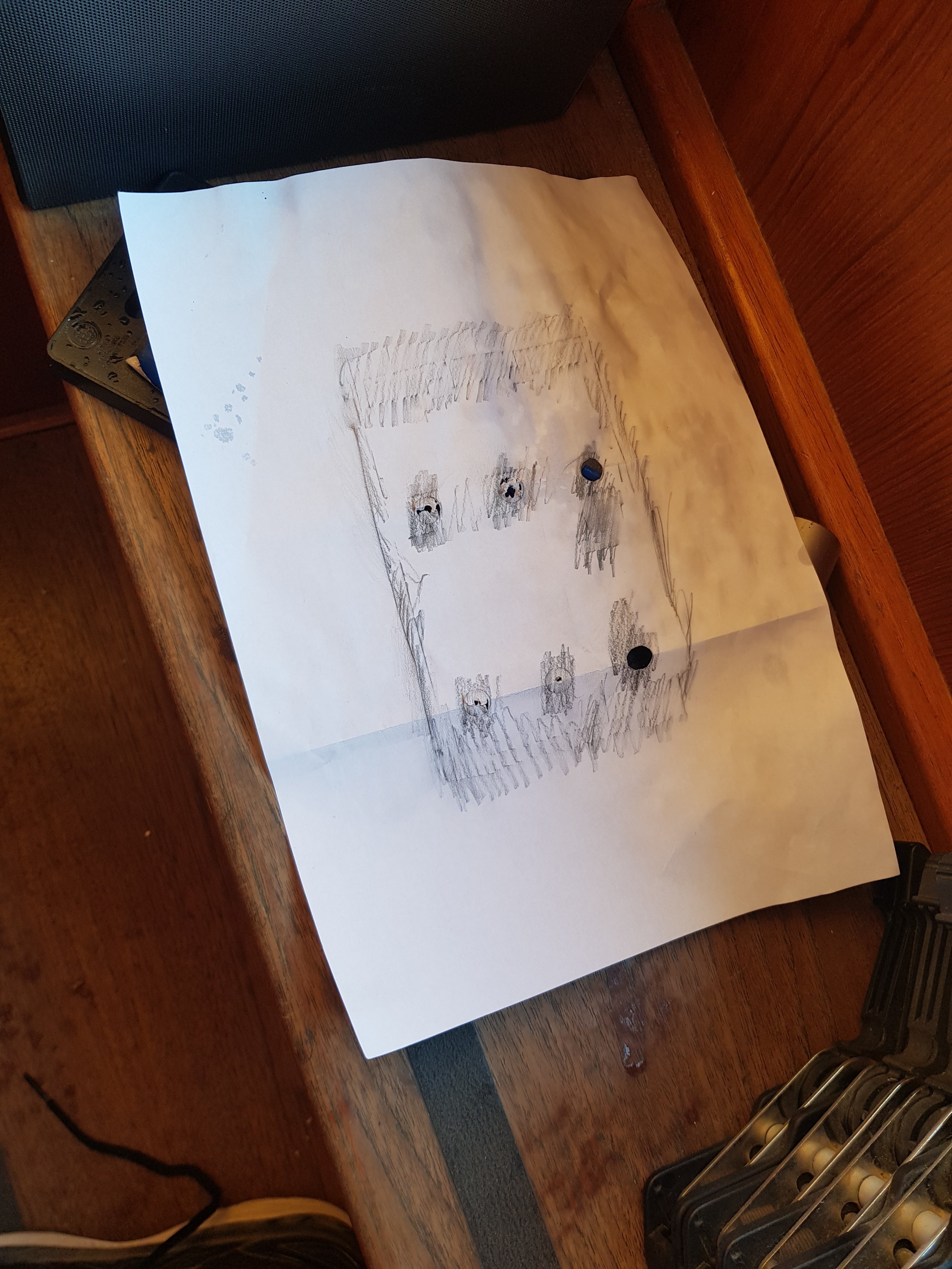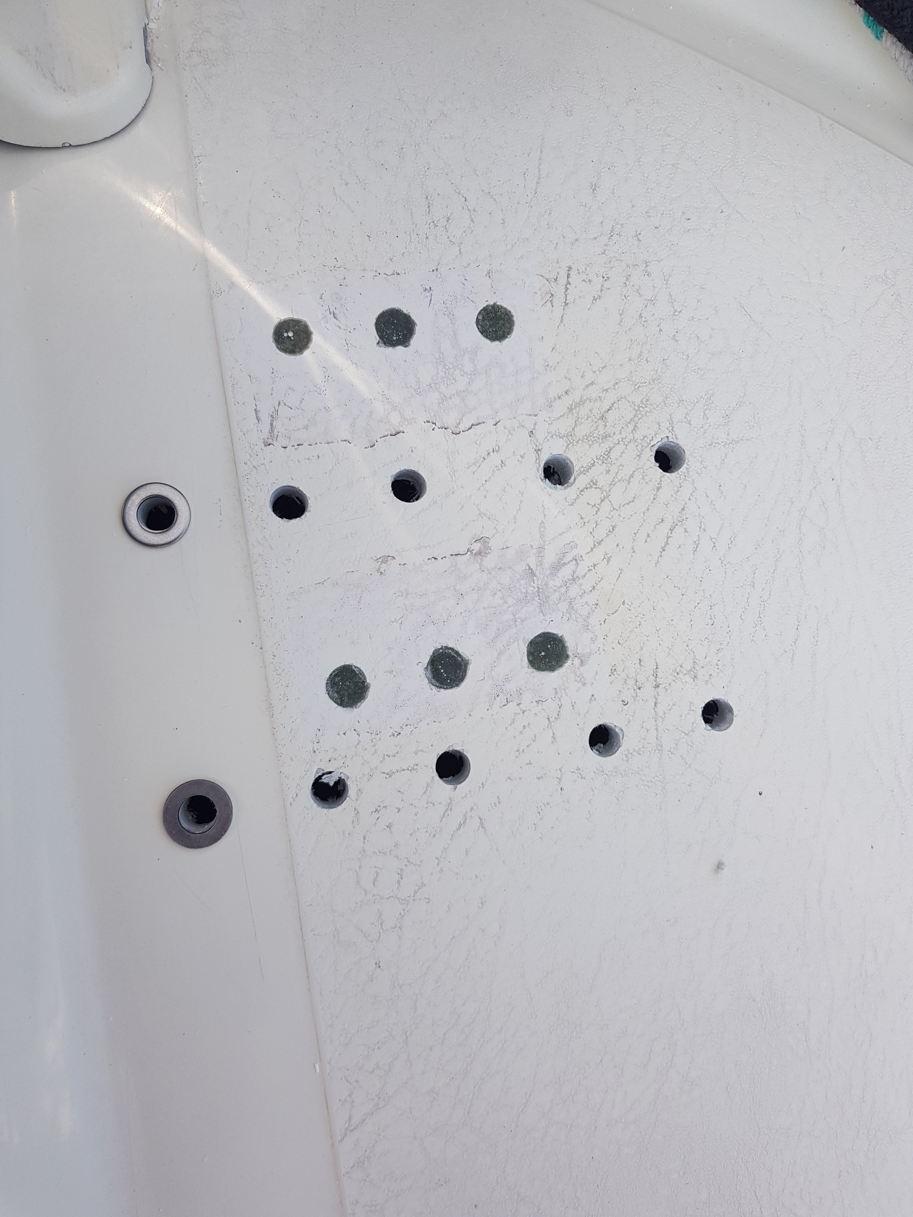 10 nya hål i båten. Halkmönstret bygger lite så två brickor fick kompensera.