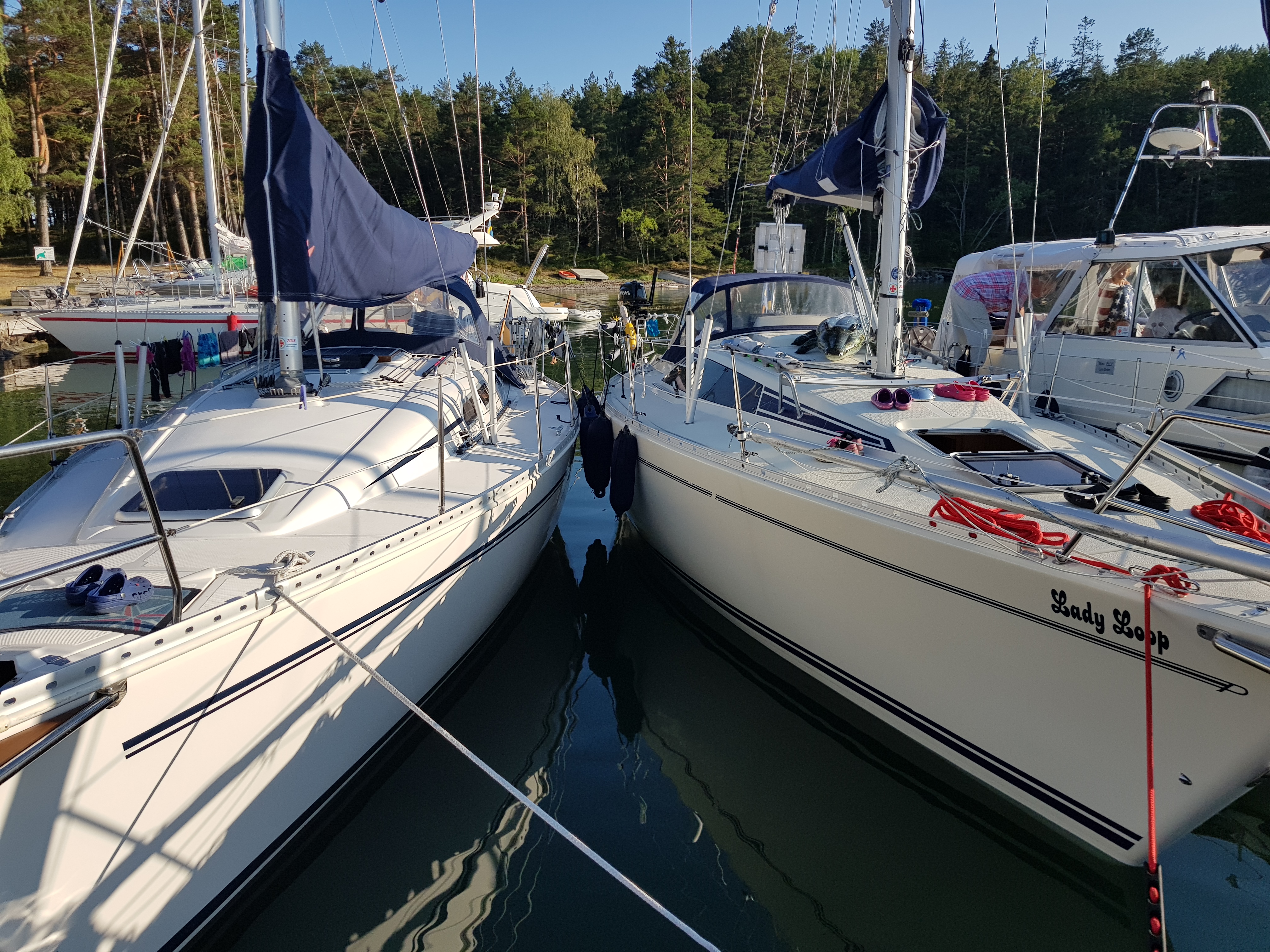 Lite osäker nattlig vindprognos gjorde att vi valde Lacka som är en trygg hamn. Nu hann prognoserna ändras men Lacka är fint i alla fall. Fortfarande lite av en favorit att komma till Nynäshamns segelsällskaps klubbholme. Seglingen började med en lätt kryss ut ur hamnen som blev ännu lättare… Vi stävade utåt för att möta ett utlovat vindvrid. Till slut kom det och med det kom möjligheten att hissa spinnakern. En helt underbar eftermiddag i solen!234M på trippen.