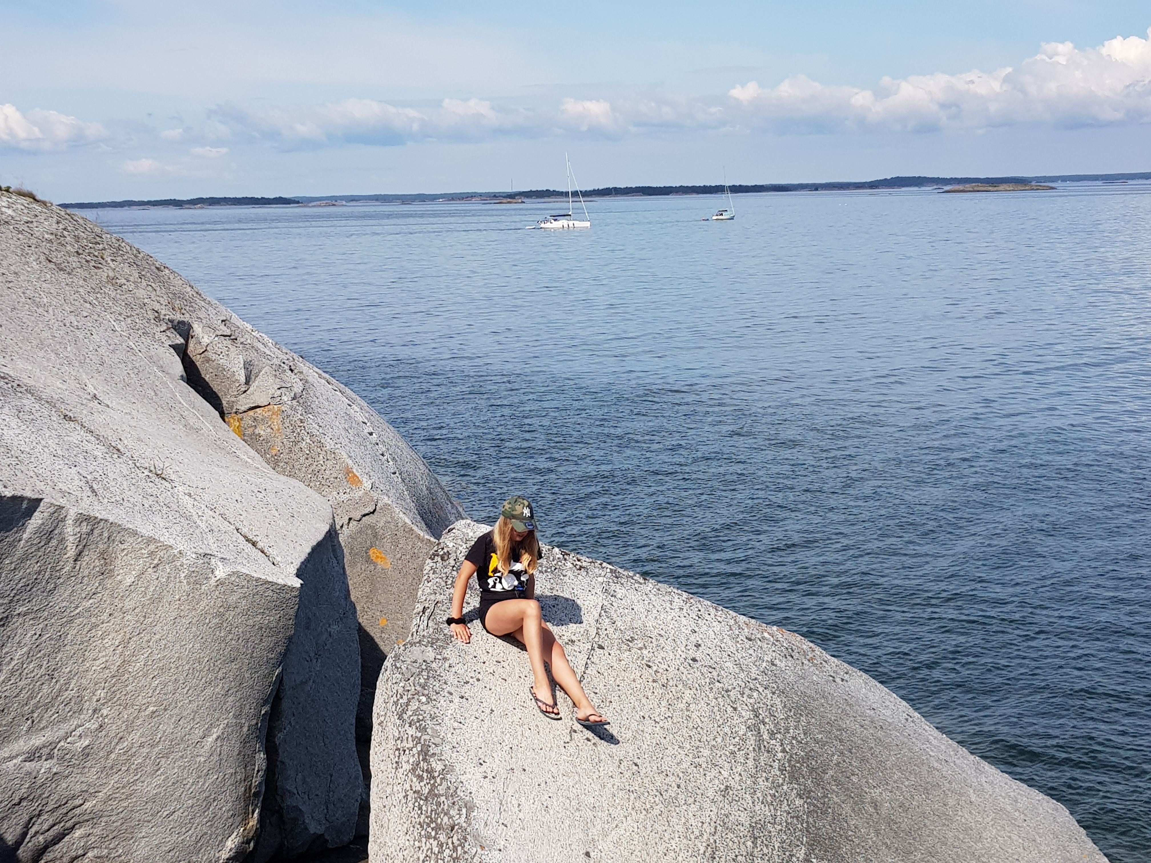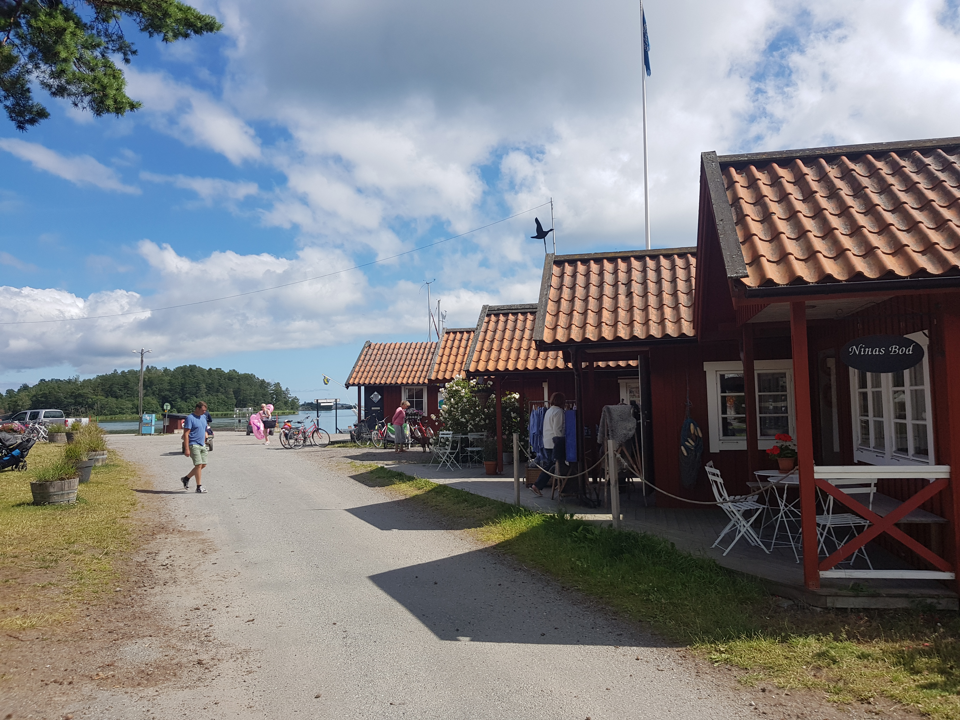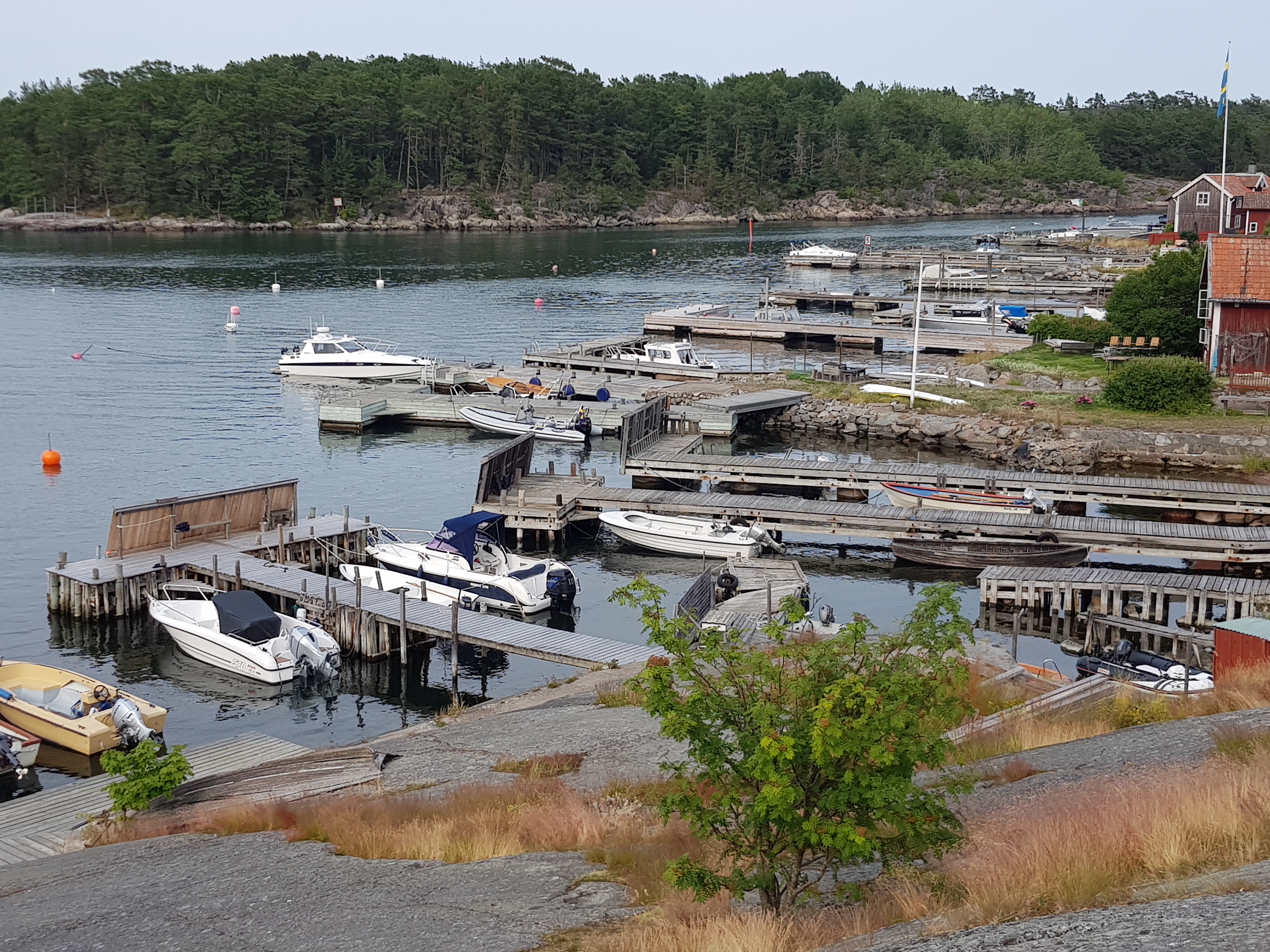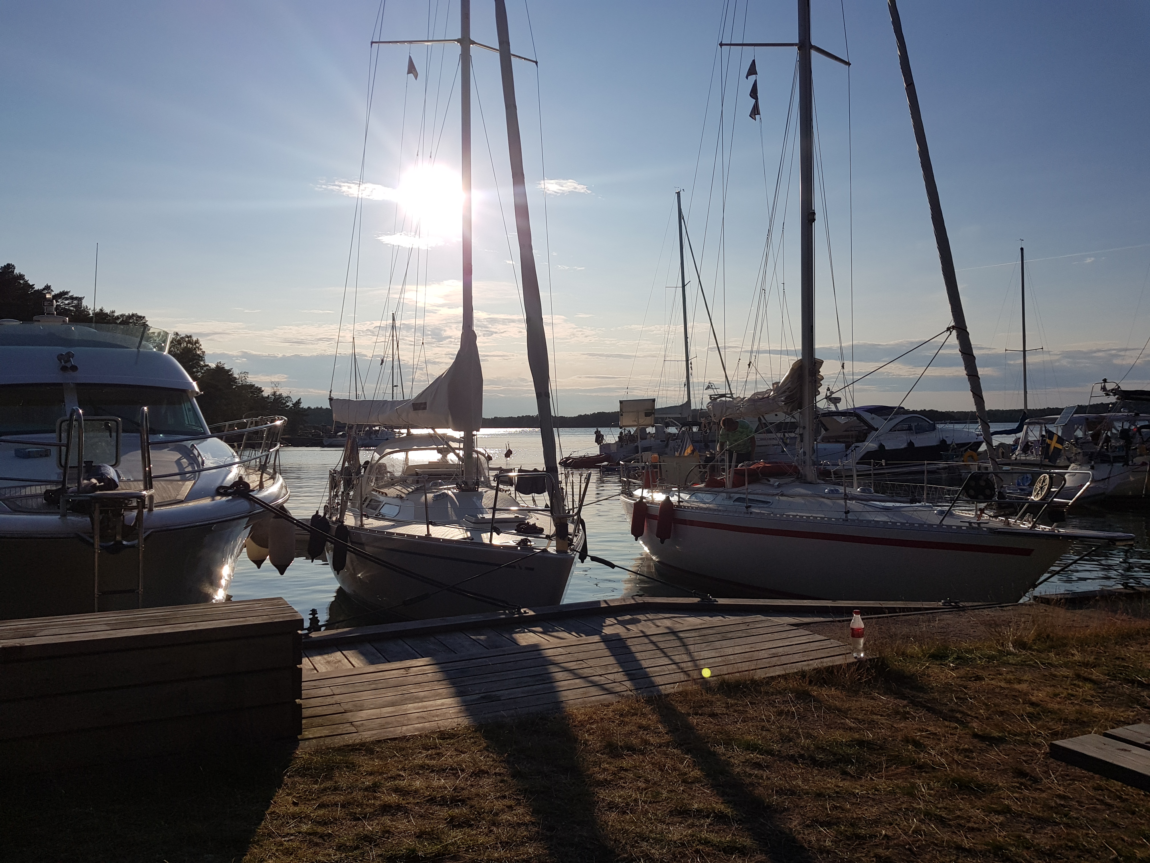 Morgonjogg. Tvättork. Handla. Titta på folk och båtar. Känner viss hatkärlek. Visst är ön fin men det är så mycket som inte funkar. 150 kr för att köra en tvättmaskin, ja EN, vattnet funkar inte.. kul att se så många smyga, eller inte smyga, med dunkar och flaskor för att fylla sina tankar. Affären är kass, inte konstigt Coop satsat på leverans hit. Mathem var där också.. Nåja. Minnet är kort, vi kommer säkert tillbaks.