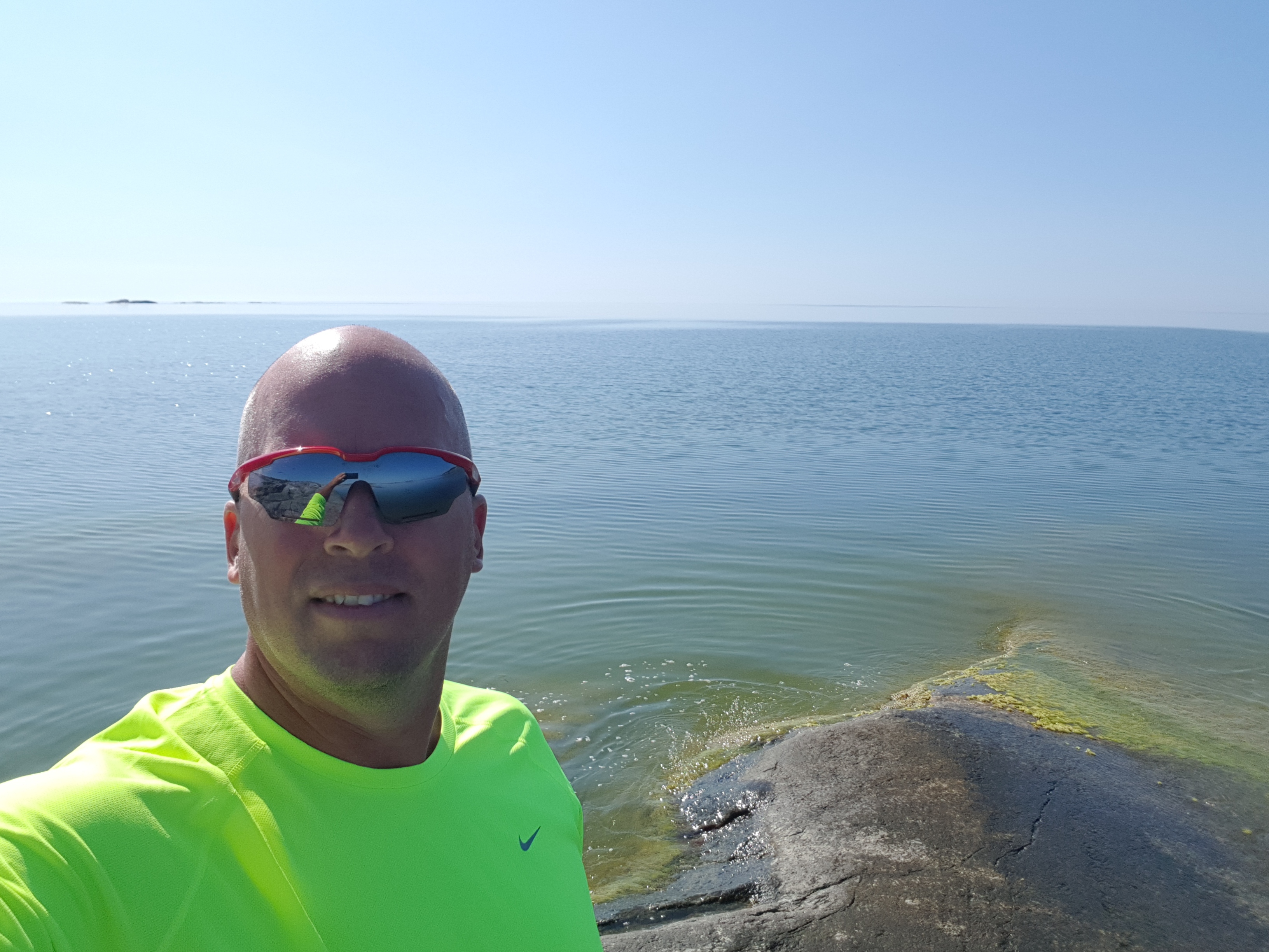 När man ligger så här och på ett sådant här ställe så stannar man gärna en stund. Blev en morgonjogg två varv runt ön. Sen mest sol, läsa bok osv. Imorgon drar vi vidare norrut.